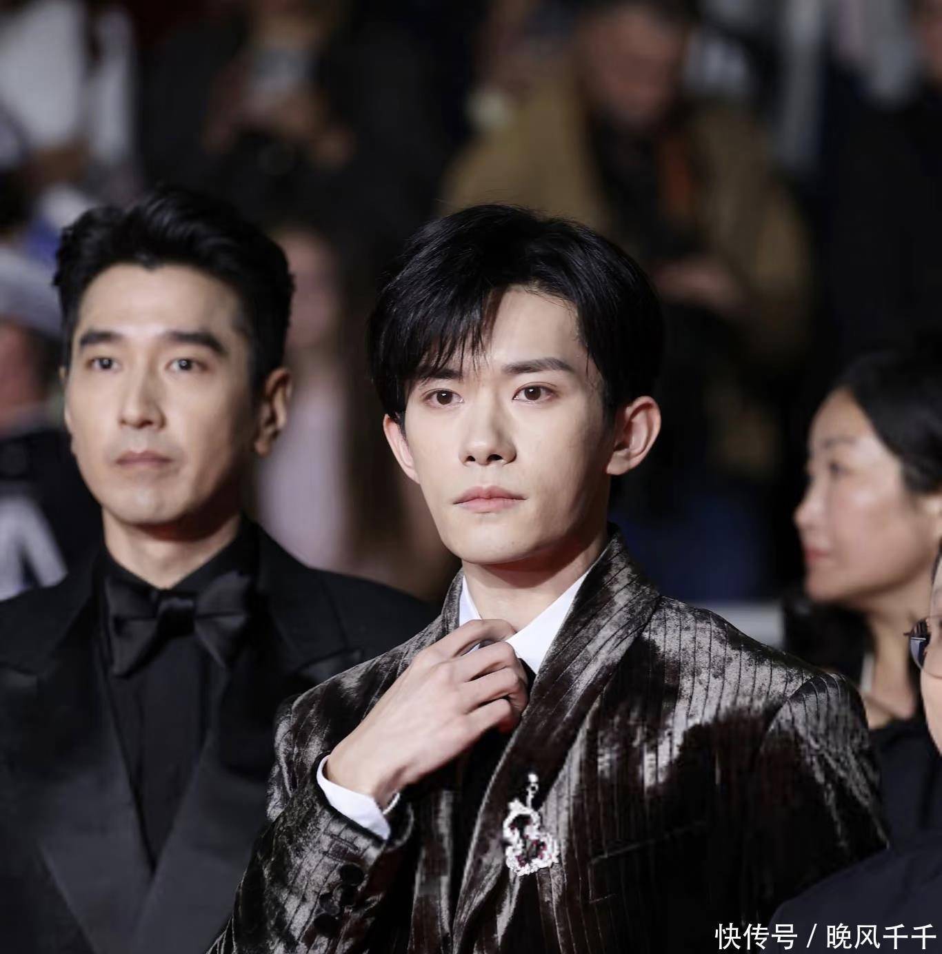 先品品这张“封神合影”的含金量——戛纳《狂野时代》首映礼红毯上,高圆圆一袭香槟色露背长裙优雅亮相,赵又廷自然地帮她提着裙摆,转头就遇上同剧组的易烊千玺。不知是谁喊了句“合张影”,他顺势用胳膊轻搂千玺的肩膀,三人同框时高圆圆浅笑、千玺腼腆低头、赵又廷一脸“人生圆满”的表情,被镜头精准捕捉。网友精准点评:“左边是国民女神娇妻,右边是顶流实力派搭档,赵又廷站在中间像极了把‘事业爱情双丰收’焊在身上的男人!”谁能想到这波同框,是赵又廷“双线开挂”的见证?作为圈内公认的“宠妻狂魔”,他和高圆圆的甜蜜早就刻进DNA里。这次戛纳之行更是甜度超标:高圆圆接受采访时,他悄悄站在镜头外举着外套;晚宴上怕妻子穿高跟鞋累,提前备了平底鞋蹲在旁边换;连两人看展时,他都全程扶着妻子的腰,眼神拉丝到网友直呼“要打胰岛素了”。更巧的是,夫妻俩这次分别带着《风林火山》《狂野时代》入围戛纳,被网友调侃:“别人夫妻是蜜月旅行,他俩是带着作品‘秀恩爱式征战戛纳’,卷死同行算了!”而和易烊千玺的“叔侄式搭档”,则贡献了满屏反差萌。据《狂野时代》剧组花絮曝光,两人在片中饰演立场对立的对手,有场暴雨中的对手戏,赵又廷需要揪着千玺的衣领对峙。为了避免弄疼对方,他提前把自己的指甲剪到最短,还在手心垫了纸巾,拍摄间隙反复问:“勒到你没?要不要休息会儿?” 千玺则回敬“暖心暴击”,知道赵又廷拍夜戏容易困,特地从国内带了提神的薄荷糖,两人片场互相关照的画面,让粉丝笑称:“这哪是对手戏?分明是‘暖心叔侄’的养成记!”